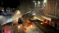 Pasi u hodhën molotovë e fishekzjarrë, policia bëri thirrje për përmbajtje të qytetarëve të cilët u larguan nga vendi ku ishin mbledhur pasi u përdor ujë e gaz lotsjellës ndaj tyre. Versus.al
