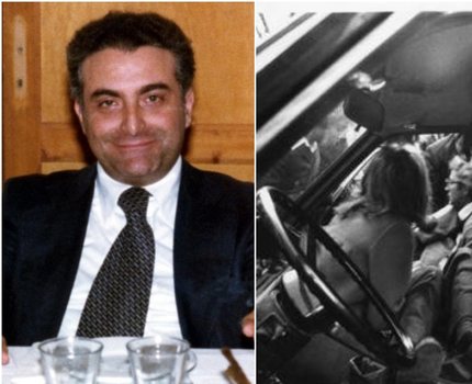 Pantallona gri dhe këmishë e zezë, ai u përshëndet pranë ndërtesës së burgut nga një turmë e vogël mbështetësish me flamujt "Trump 2024" .
